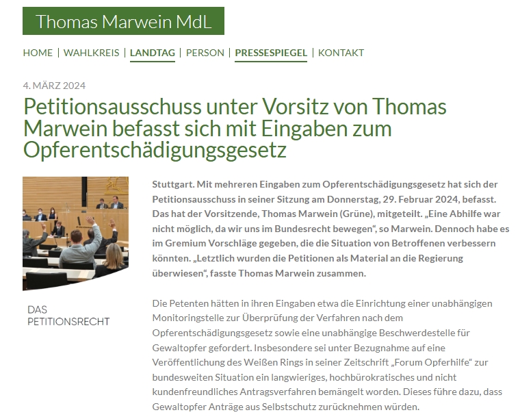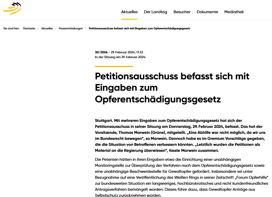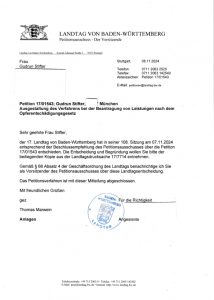 Externe Petition/ Bezugnahme Opferentschädigung, 07. März 2024: