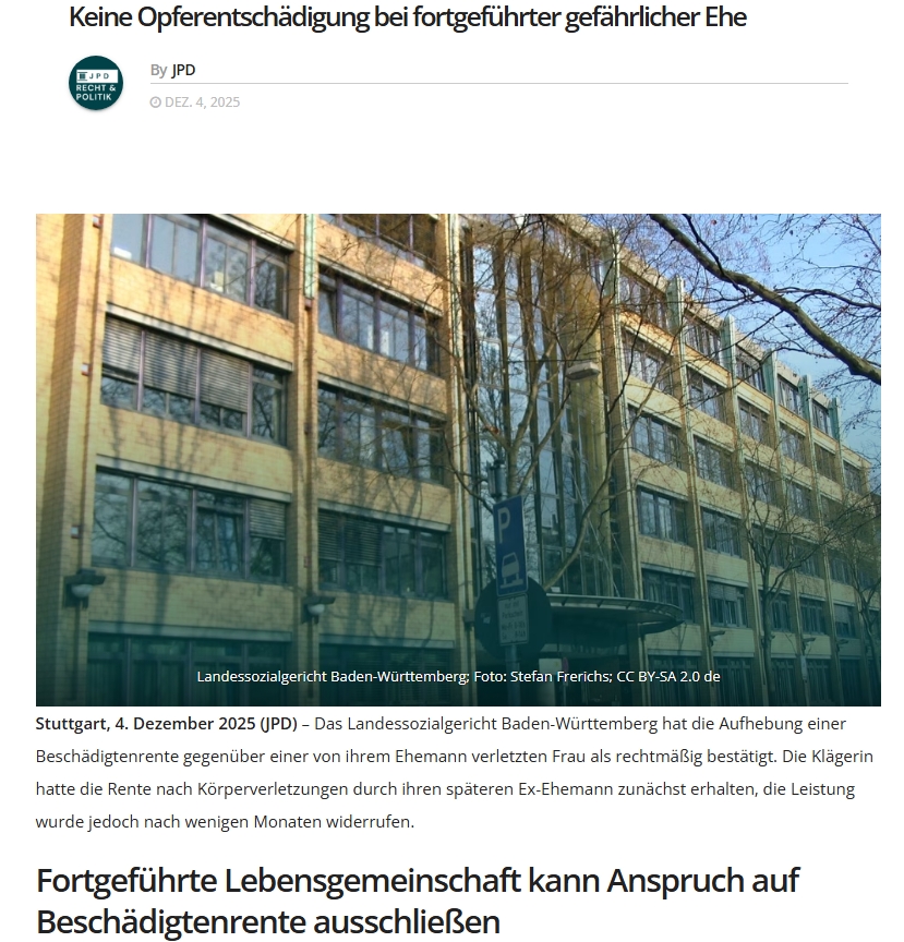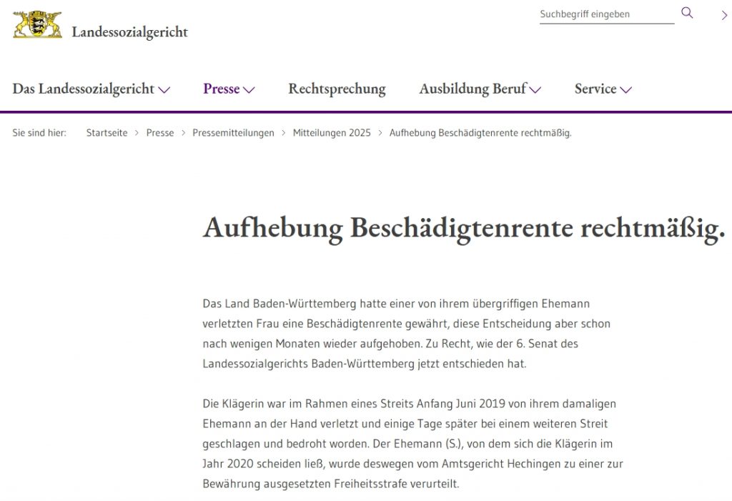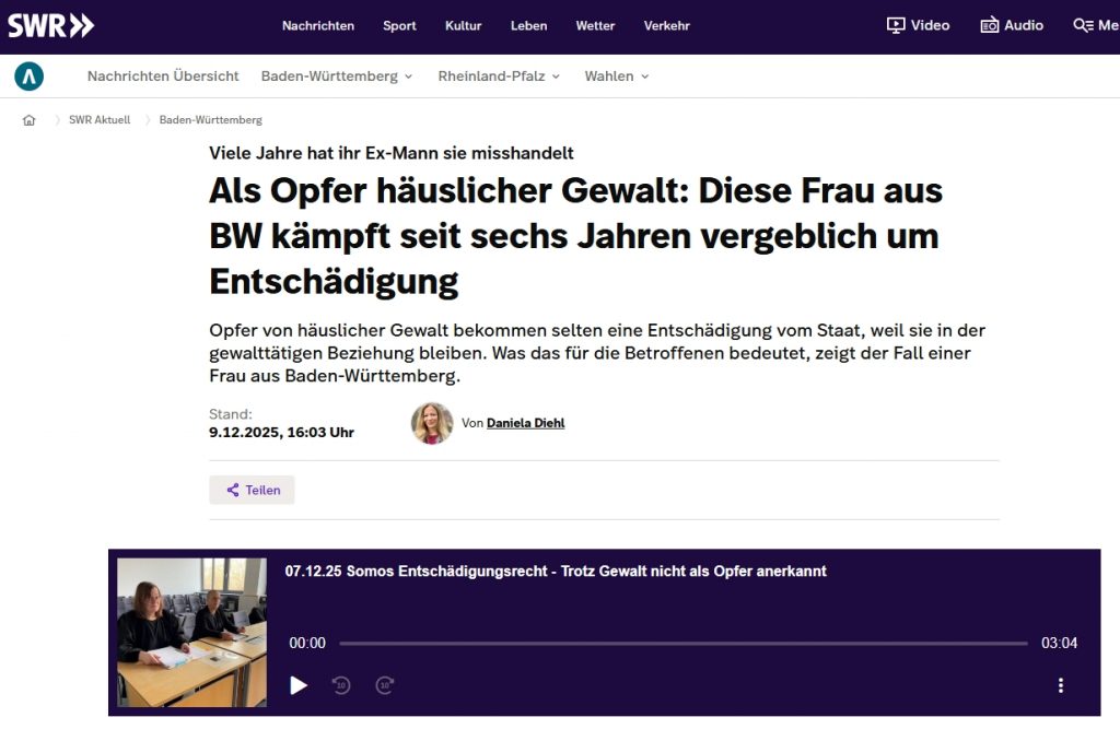 Presseartikel 2025- Verweigerung der Opferentschädigung nach häuslicher Gewalt aufgrund nicht unmittelbar stattgefundener Trennung/ Baden-Württemberg: